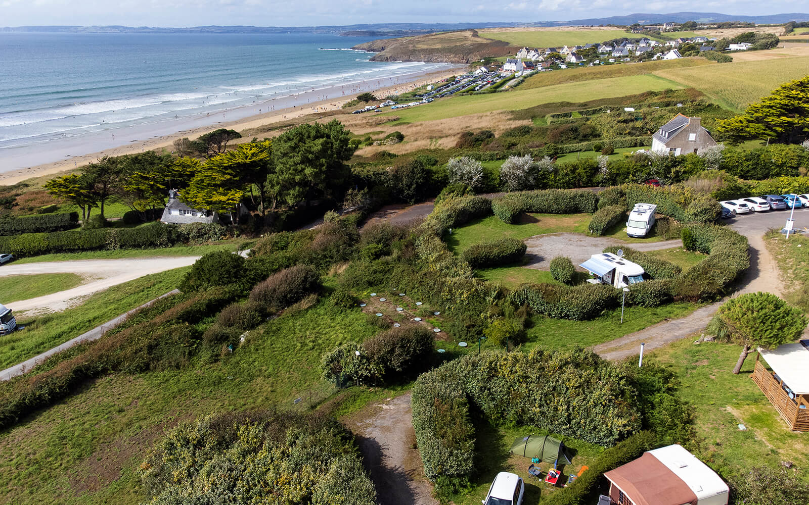 Between the Cap de la Chèvre and the Pointe de Tréboul, Trezmalaouen cultivates its authenticity in the unspoiled nature of the Bay of Douarnenez. The cliffs protect a long stretch of fine sand: Kervel beach. Here, travelers can enjoy an extraordinary, vast and wild panorama that stretches as far as the Crozon peninsula.