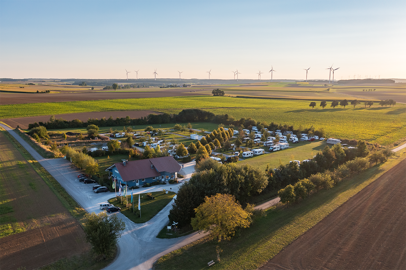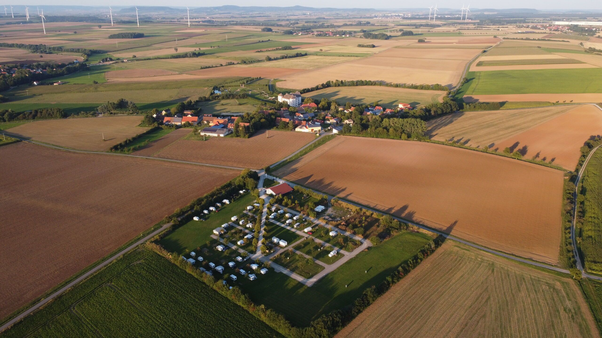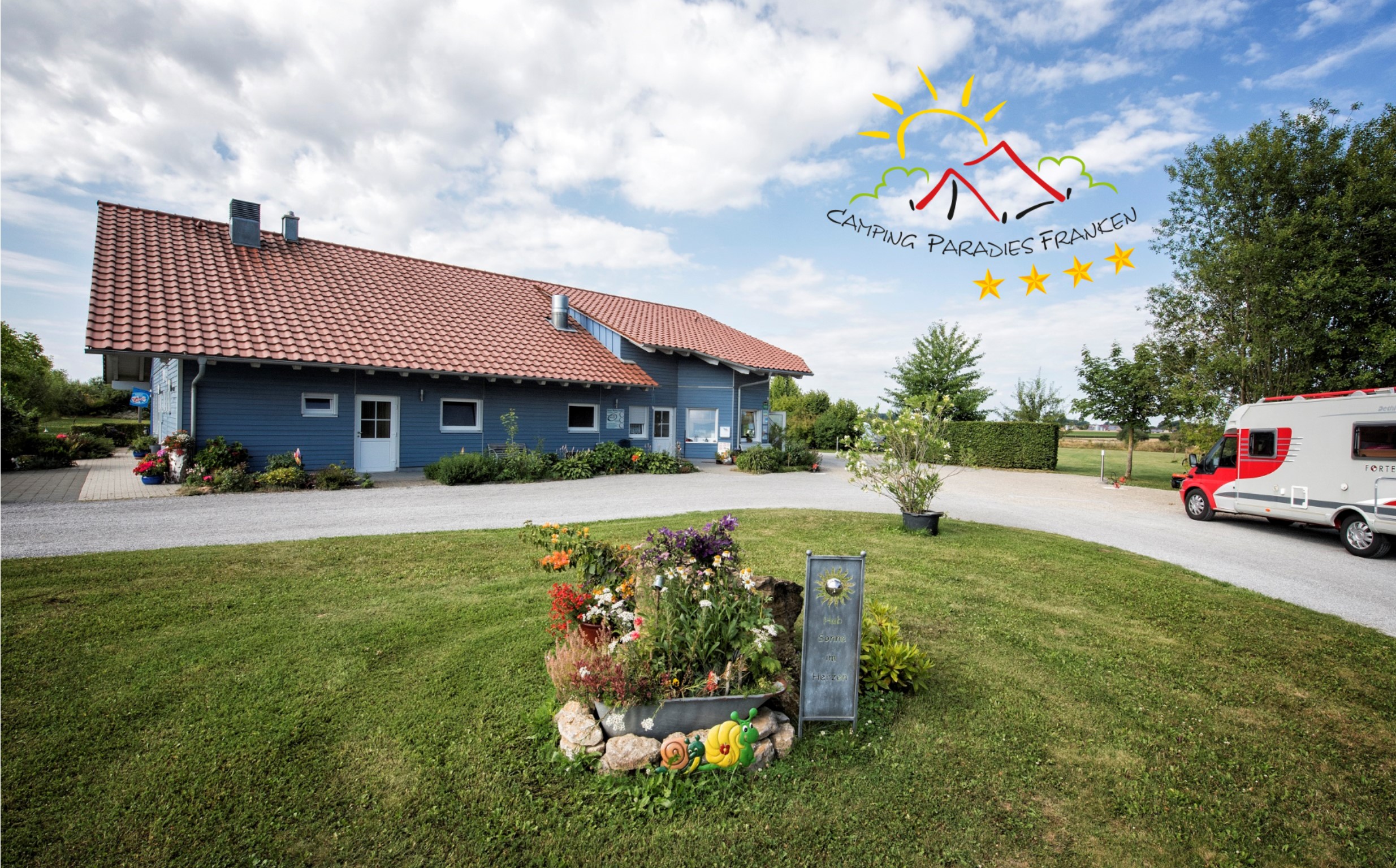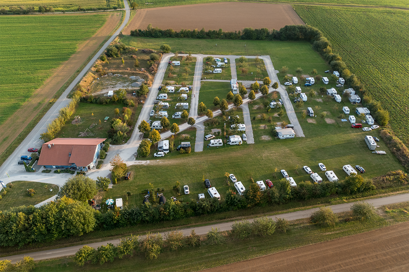Der Platz, den wir 2008 eröffnet haben, liegt in sehr ruhig und ländlich, inmitten von Feldern zwischen den fränkischen ‚Metropolen‘ Würzburg und Rothenburg ob der Tauber. Wir laden Sie ein zum Ruhe suchen, Entspannung finden, Kultur erleben und Natur genießen!