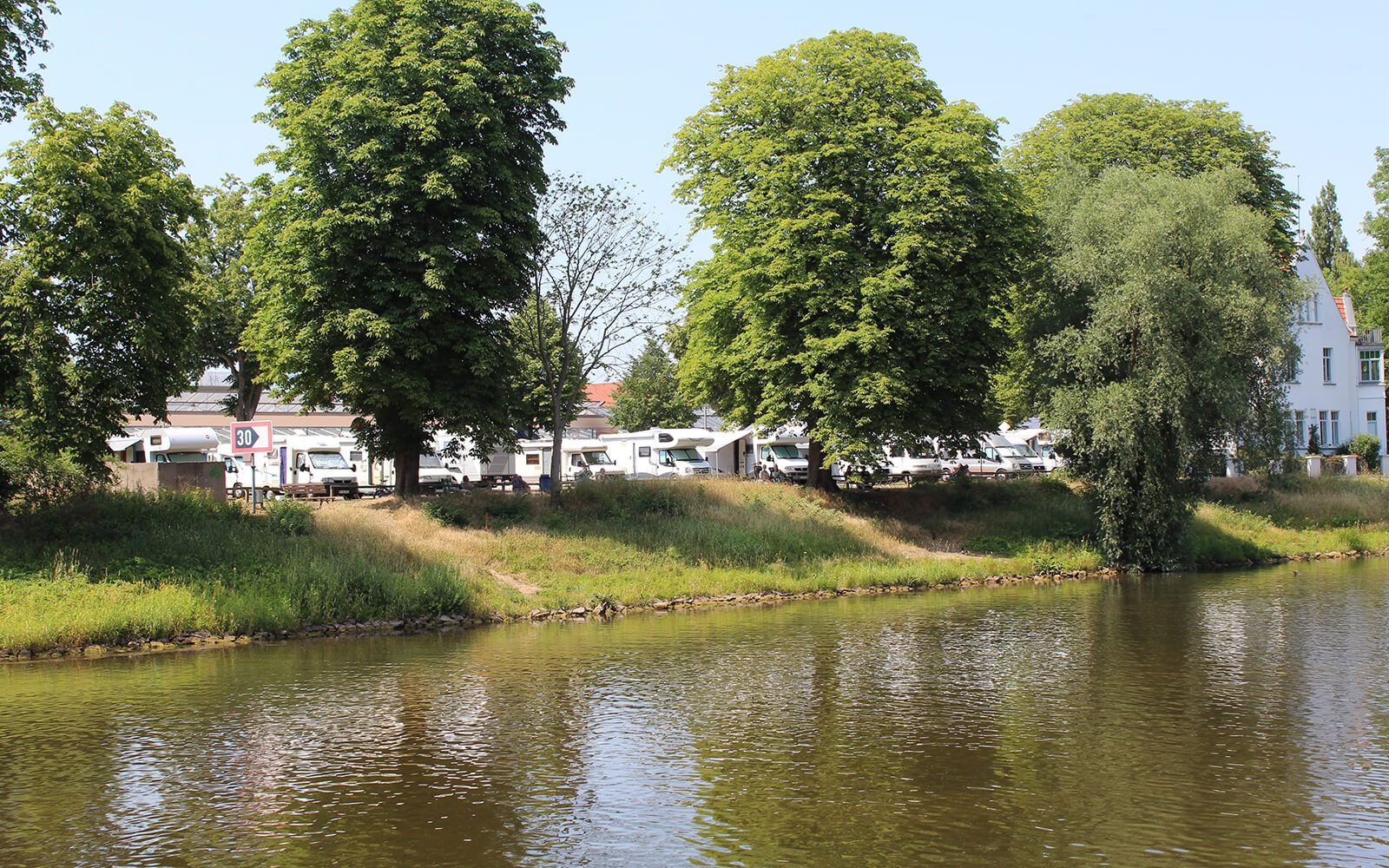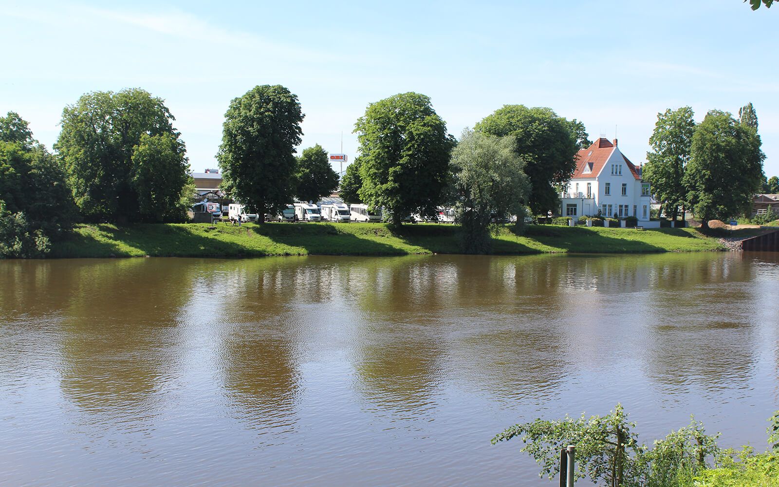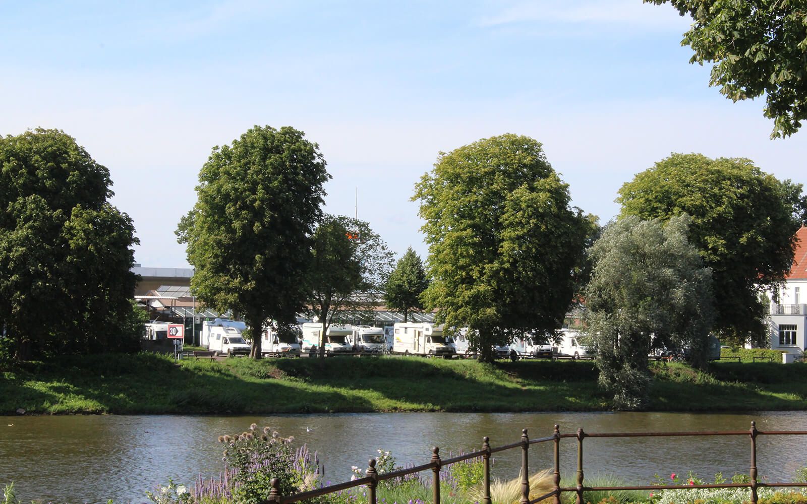 Freuen Sie sich auf einen ruhig gelegenen Stellplatz direkt am Weserufer mit Blick auf den Fluss und die historische Altstadt Nienburgs. Ein Fußweg führt zur Weser Fußgängerbrücke, über die das Zentrum bzw. die Altstadt innerhalb kürzester Zeit erreichbar ist.