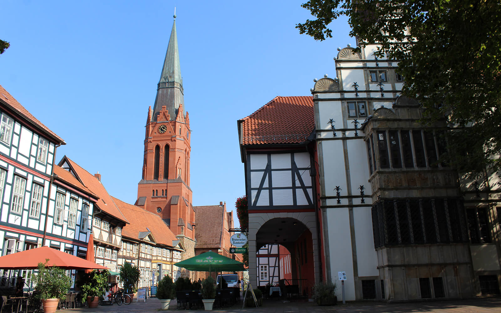 Genau in der Mitte – zwischen den Städten Hannover und Bremen – liegt die Stadt Nienburg direkt an der Weser, das wirtschaftliche und kulturelle Zentrum an der Mittelweser. Herzstück der historischen Stadt mit einer 1000jährigen Geschichte ist die Altstadt mit ihren Fachwerkfassaden, Renaissancefronten und Ziegelmauerwerken. Hier befindet sich auch das Nienburger Rathaus, ein prächtiges Gebäude aus der Zeit der Weserrenaissance. Die Hauptkirche Nienburgs, eine dreischiffige Hallenkirche im Stil der norddeutschen Backsteingotik, wurde 1441 geweiht. Der 72 m hohe Kirchturm, ein neugotischer Bau, ist Wahrzeichen der Stadt und entstand 1896/97. Das vermutlich älteste Gebäude der Stadt ist der Stockturm. Er ist der Rest der einstigen Wasserburg der Grafen von Hoya. Der Turm wurde als Gefängnis genutzt; hier lagen Gefangene „im Stock“.