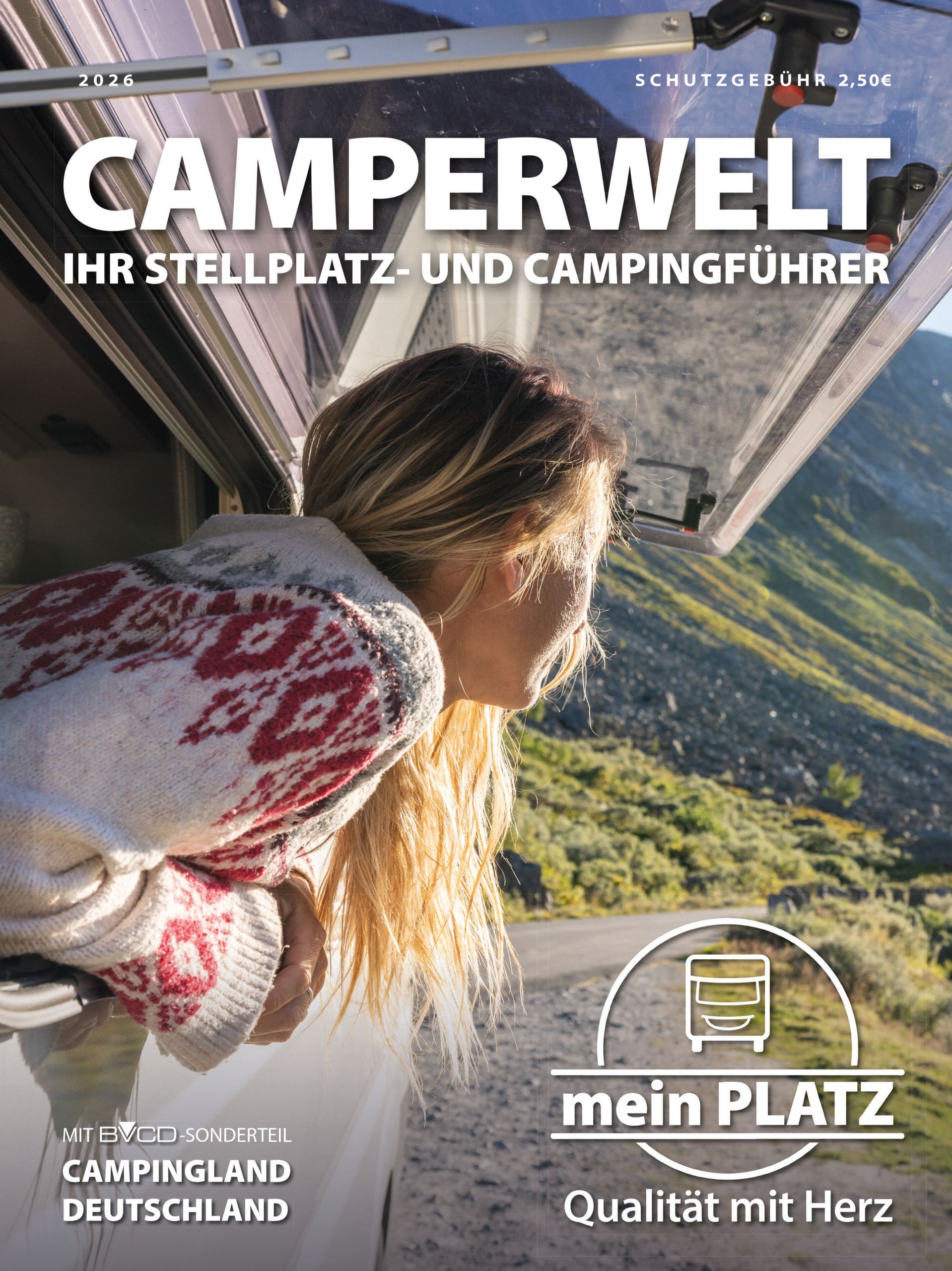 Entdecken Sie die neue mein PLATZ Camperwelt 2026 – Ihr verlässlicher Guide für Stellplätze und Campingplätze! Mit liebevoll ausgewählten, hochwertigen Plätzen in über 12 Nationen präsentieren wir Ihnen mehr als 400 Ziele, die darauf warten, von Ihnen entdeckt zu werden. Unsere Beschreibungen sind detailliert, klar strukturiert und authentisch – perfekt für Ihre nächste Abenteuerreise.